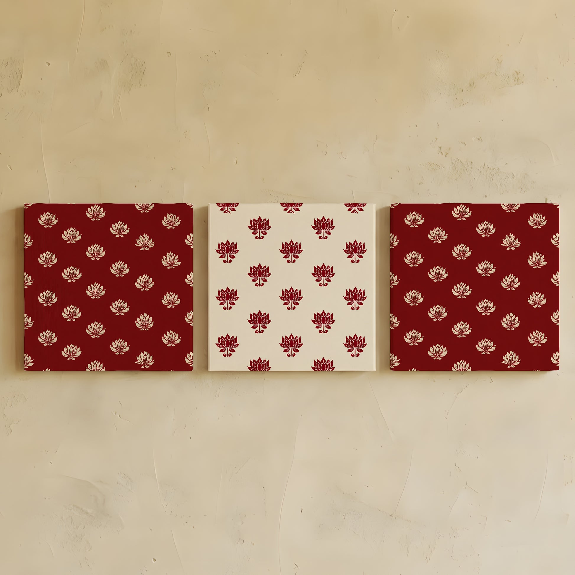 Canvas Wall Art | Set of 3 | Lotus Motif Collection 1