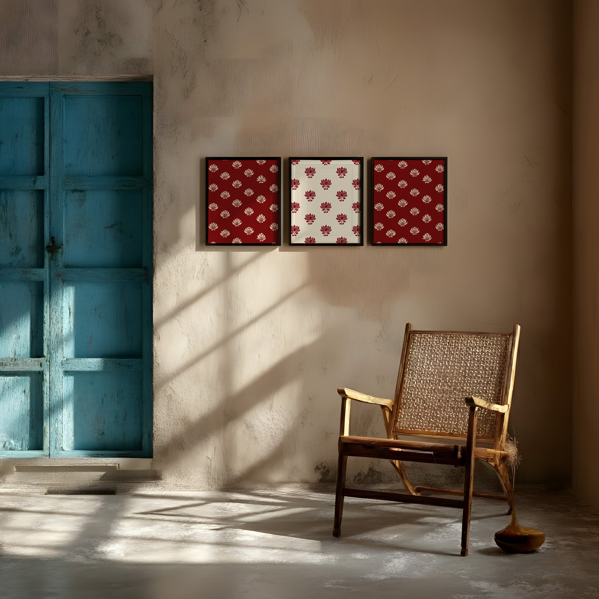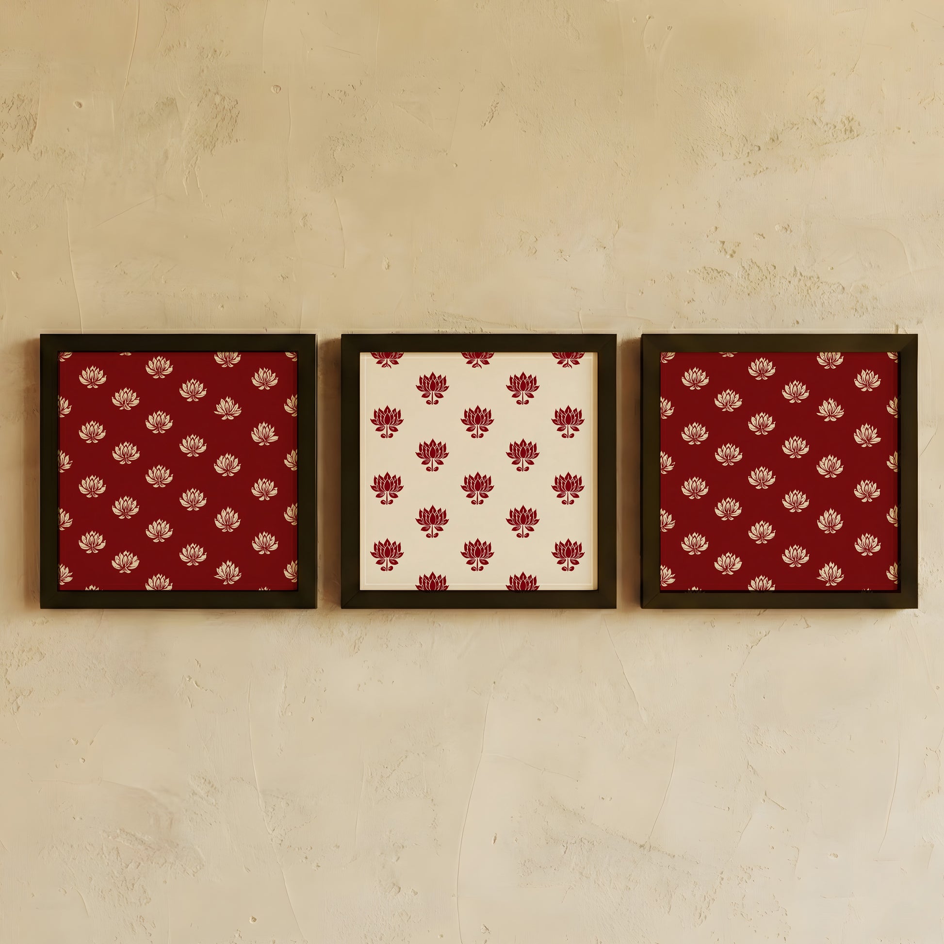 Framed Wall Art | Set of 3 | Lotus Motif Collection 1